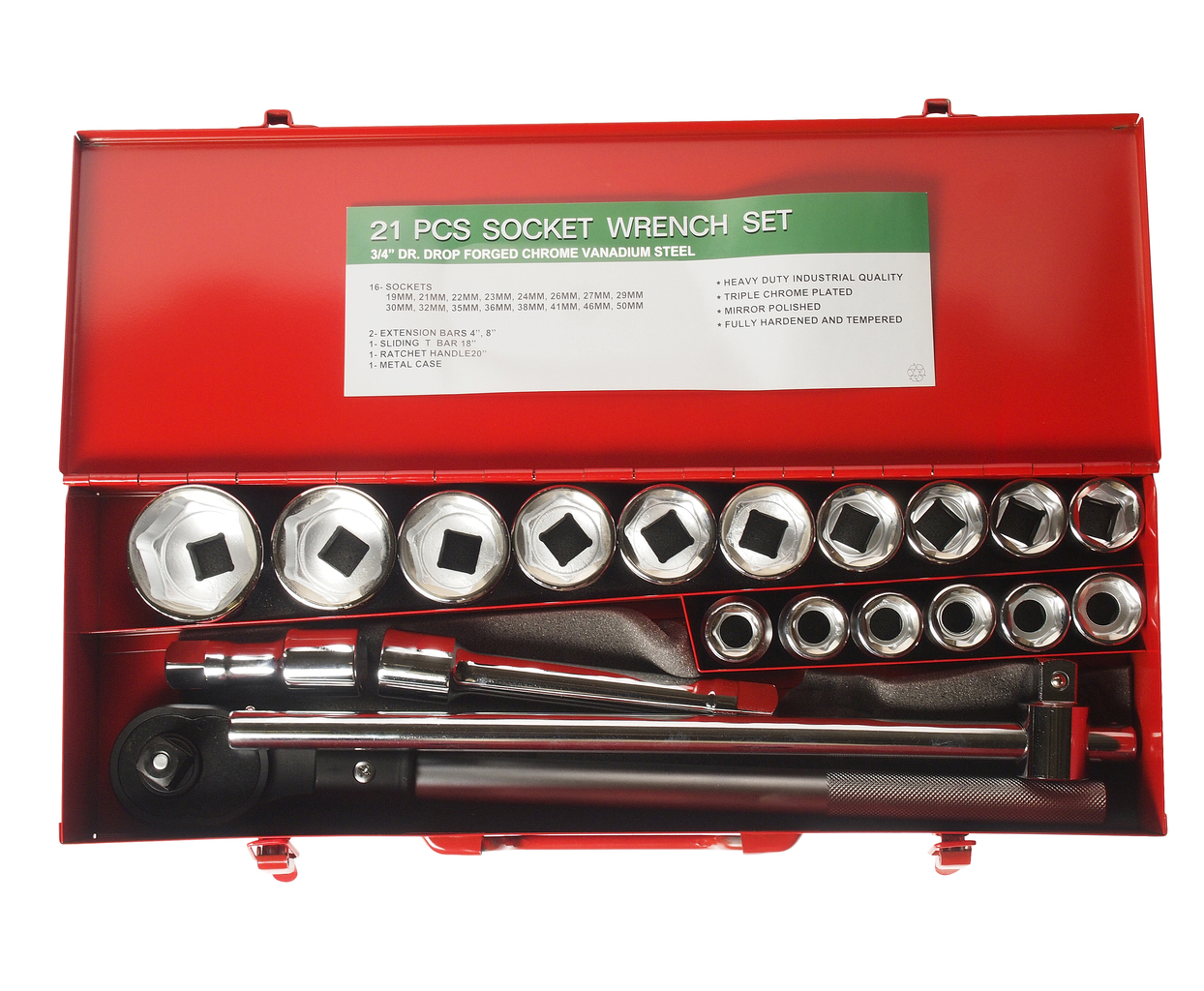 Головки: 19, 21, 22, 23, 24, 26, 27, 29, 30, 32, 35, 36, 38, 41, 46, 50 мм. – 16 шт.